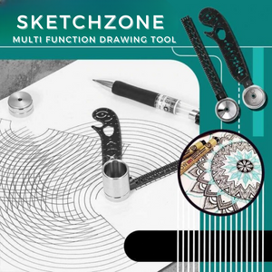 De Sketchy™ Multi-Function Drawing Tool is een uitgebreide 7-in-1 oplossing voor al uw creatieve behoeften. Het is uitgerust met een rekenkompas, gradenboog, liniaal, boekenlegger, flesopener, gebogen liniaal en een tekensjabloon voor het maken van prachtige mandala's. Deze extra functies zijn essentieel voor elke kunstenaar of ontwerper, waardoor Sketchy™ een must-have tool is voor iedereen die van creëren houdt.